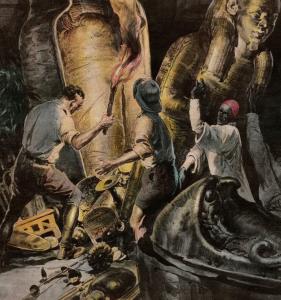 Lo spettacolo che li accolse, quando la porta fu aperta ed una potente luce, forse collegata alla serratura inondò l’ambiente, era degno di un Faraone: mummie, sarcofagi, armi, arnesi, gioielli e numerosi altri oggetti di uso quotidiano.